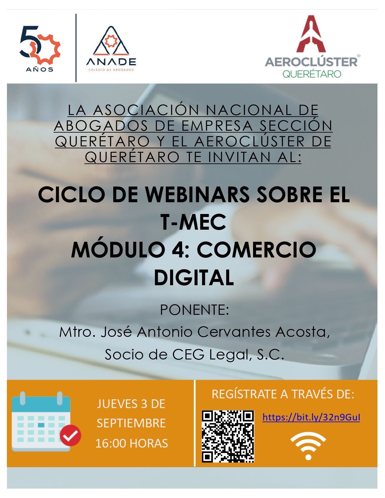 El próximo 3 de septiembre del presente año tendré el honor de dar una charla sobre el capítulo referente al comercio digital del T-MEC. Aquí las indicaciones para conectarse.